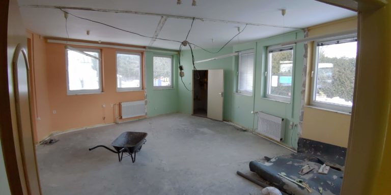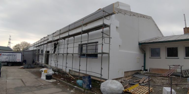 Na přiložených fotografiích si můžete prohlédnout postup rekonstrukce budovy, kterou jsme zakoupili v roce 2017 a která byla určená k výrobě a skladování výrobků z plastů a kovů.