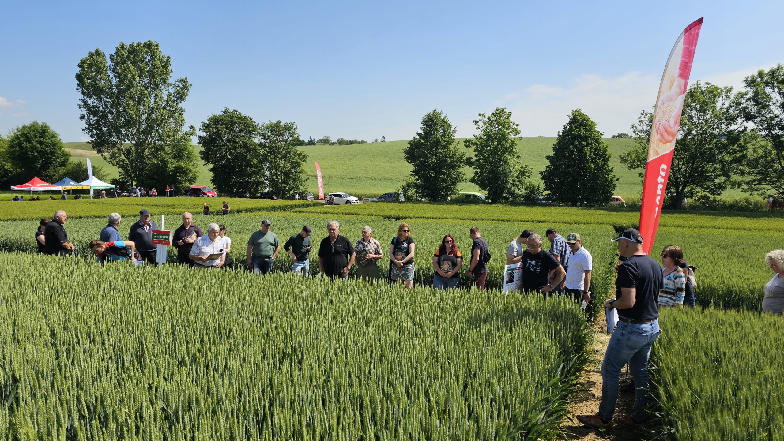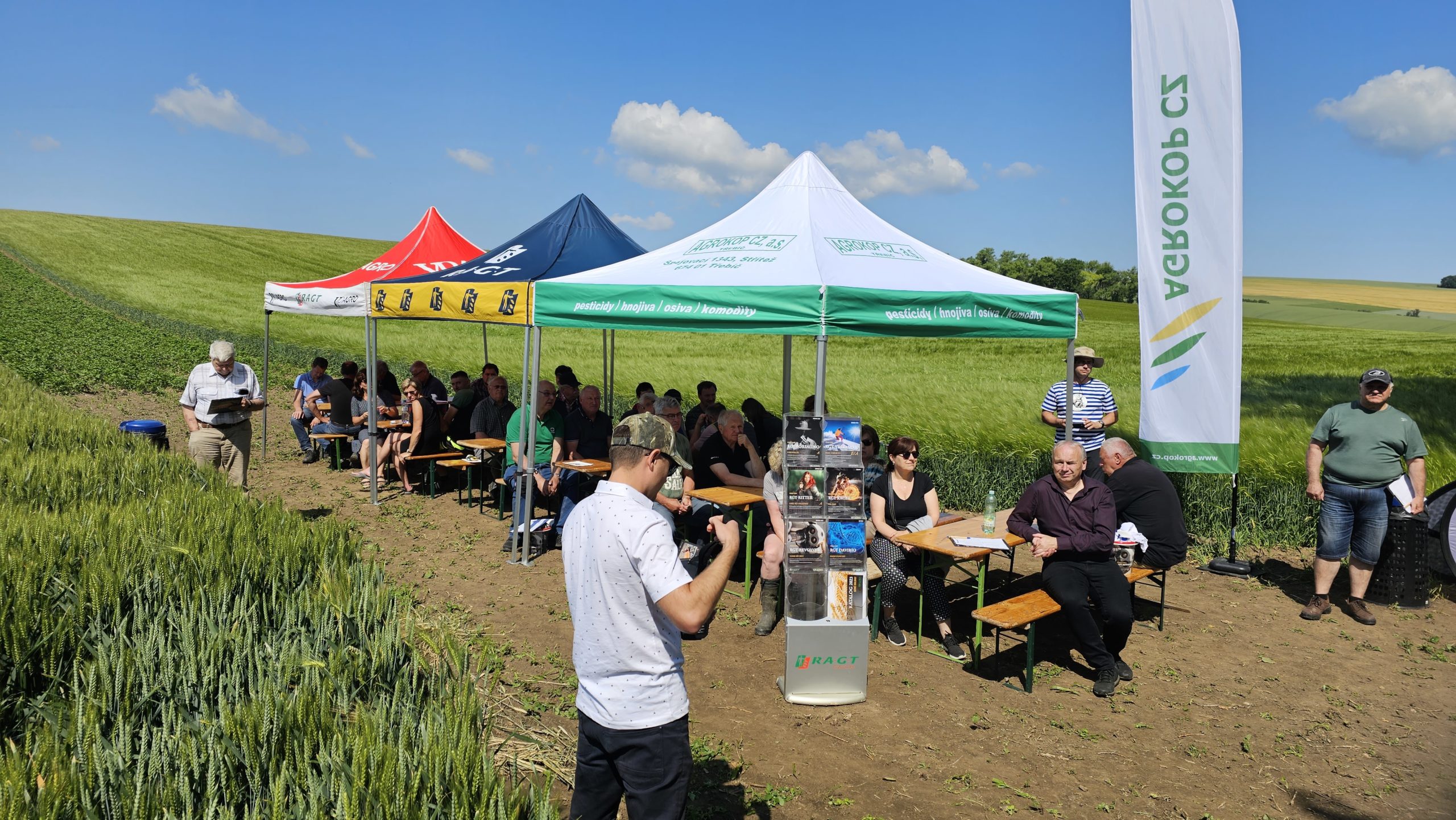 Třetí ročník našeho polního dne v Bohatých Málkovicích se musel líbit. O návštěvníky bylo dobře postaráno, výběr klobás a sýrů na grilu uspokojil všechny. Následně proběhly komentované prohlídky pšenic a řepek odrůd RAGT. Stav porostů byl bezvadný, poděkování zaslouží agronomický úsek společnosti ZEMO, spol. s r.o.